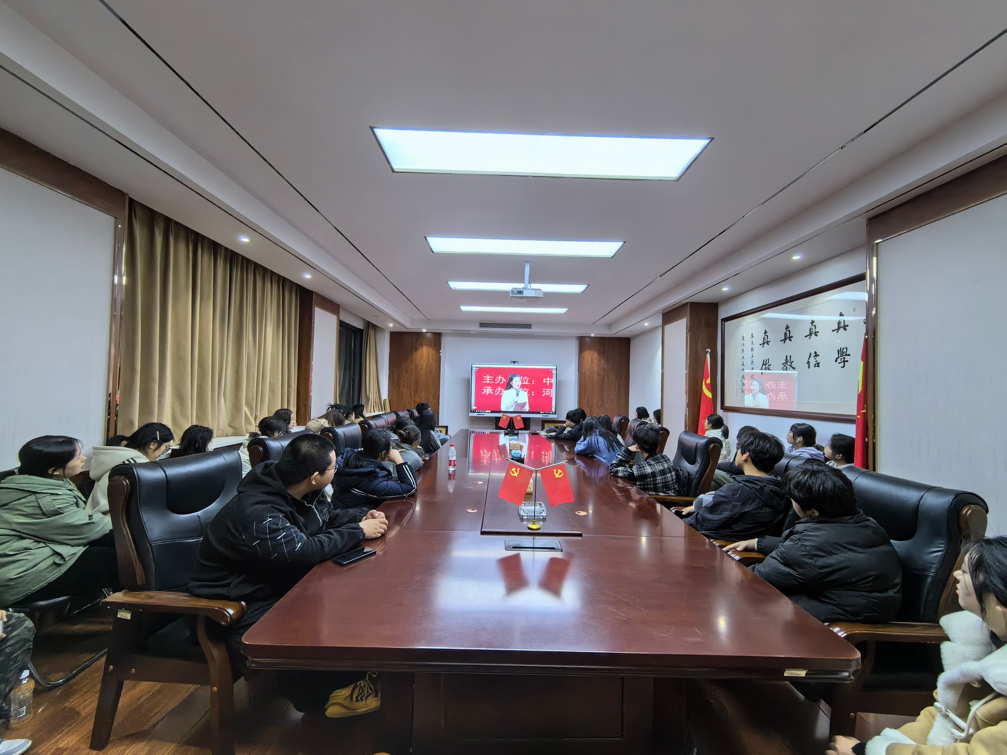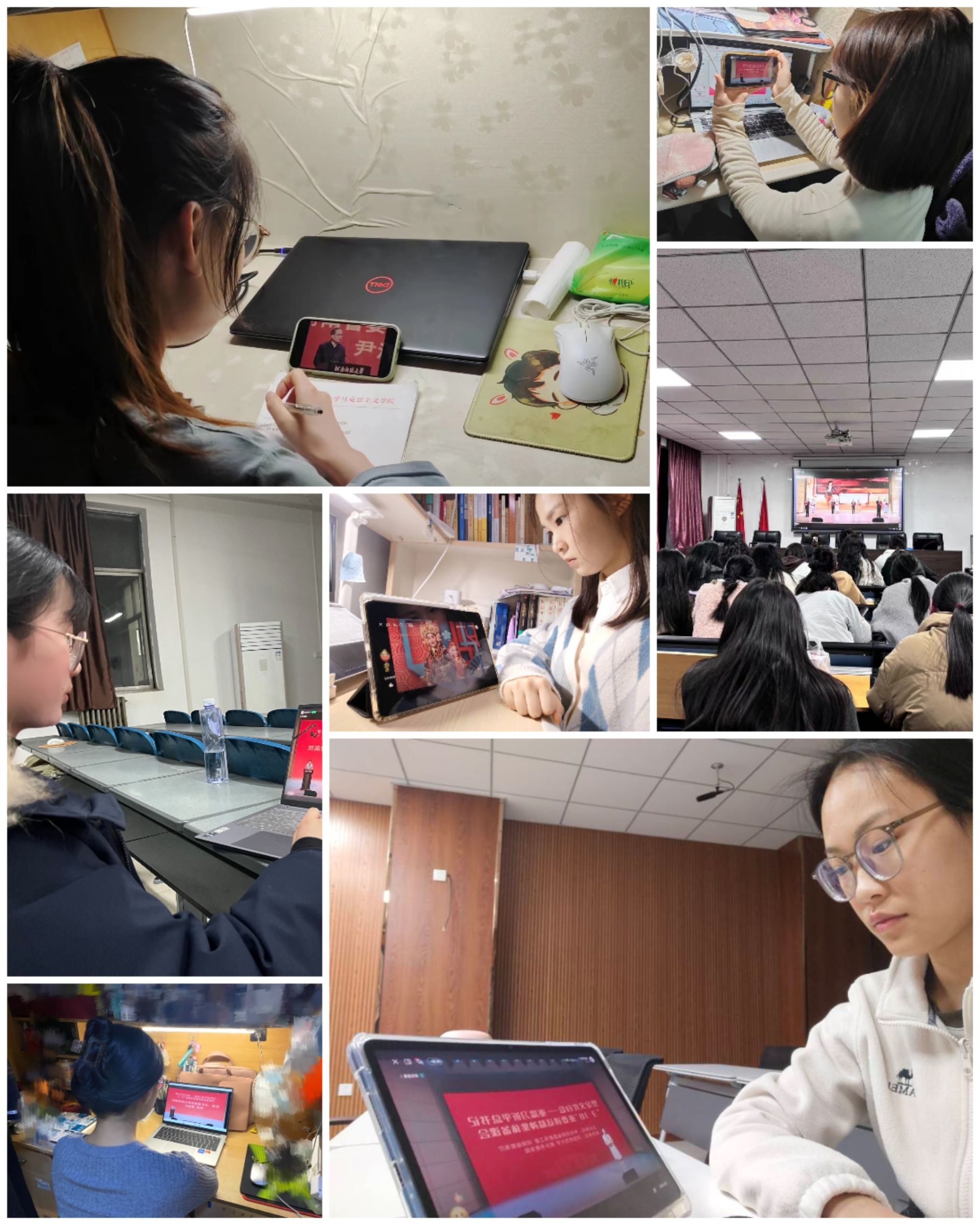 3月9日晚,伟的国际1946bv官网师生“云端”齐聚,观看由省委宣传部、省委教育工委、省教育厅举办的2024年春季开学思政第一课暨大中小学思政课集体备课活动,此次活动以“坚定文化自信——重温习近平总书记‘3·18’重要讲话精神”为主题,大中小学四位主讲教师围绕“启智”“筑基”“明理”“立志”四个章节,透过河南故事、河南文化看中国故事、中华文化,师生们纷纷表示这是一堂赓续文化基因,厚植文化自信的思政大课。
