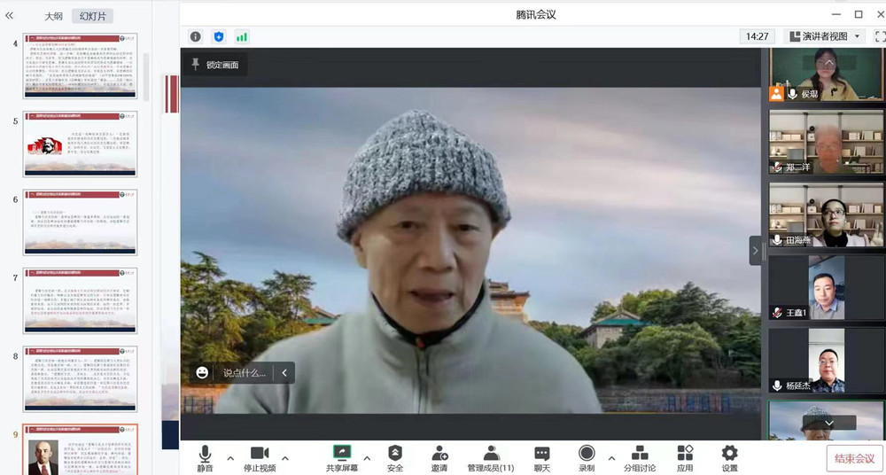 为加强博士生课程建设,提高课程育人水平,伟的国际1946bv官网特邀武汉大学教授、博士生导师、伟德国际victor1946官网特聘马克思主义理论学科带头人梅荣政为博士生讲授《习近平新时代中国特色社会主义思想专题摘编》课、《马克思主义前沿问题研究专题》课。两门课程通过腾讯会议线上方式进行,自11月22日开讲,历时六周,共计42学时。