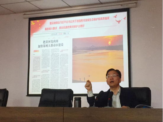 为深入贯彻落实中央精神,李庚香教授以出彩河南为切入点,从三个板块进行了深刻阐述:首先他分析了黄河流域生态保护和高质量发展的问题,强调要着力加强生态保护治理,把黄河变成中华民族的幸福河。其次他指出在中部地区崛起中,河南要奋勇先进。并深刻阐释了总书记关于中原文化、黄河文化、黄河文明、黄河治理体系与治理能力现代化关系的重要论述。最后,李庚香教授提出新时代马院发展面临的两大问题,即百年未有之大变局与制度自信和治理体系、治理能力现代化。