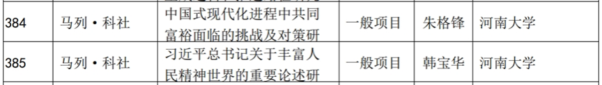 近日,河南省哲学社会科学规划办公布了2023年河南省哲学社会科学规划年度项目、决策咨询项目、专题项目立项名单,公司获批立项6项,分别是石峰可副教授主持的一般项目《中国共产党引领人民增强精神主动的理论与实践研究》、韩宝华副教授主持的一般项目《习近平总书记关于丰富人民精神世界的重要论述研究》、朱格锋副教授主持的一般项目《中国式现代化进程中共同富裕面临的挑战及对策研究》、张枫林副教授主持的一般项目《道家生态思想及其当代价值研究》、古桂琴副教授主持的专题项目《全过程人民民主的河南实践研究》和牛璞博士主持的专题项目《河南深入实施乡村振兴战略研究》。
