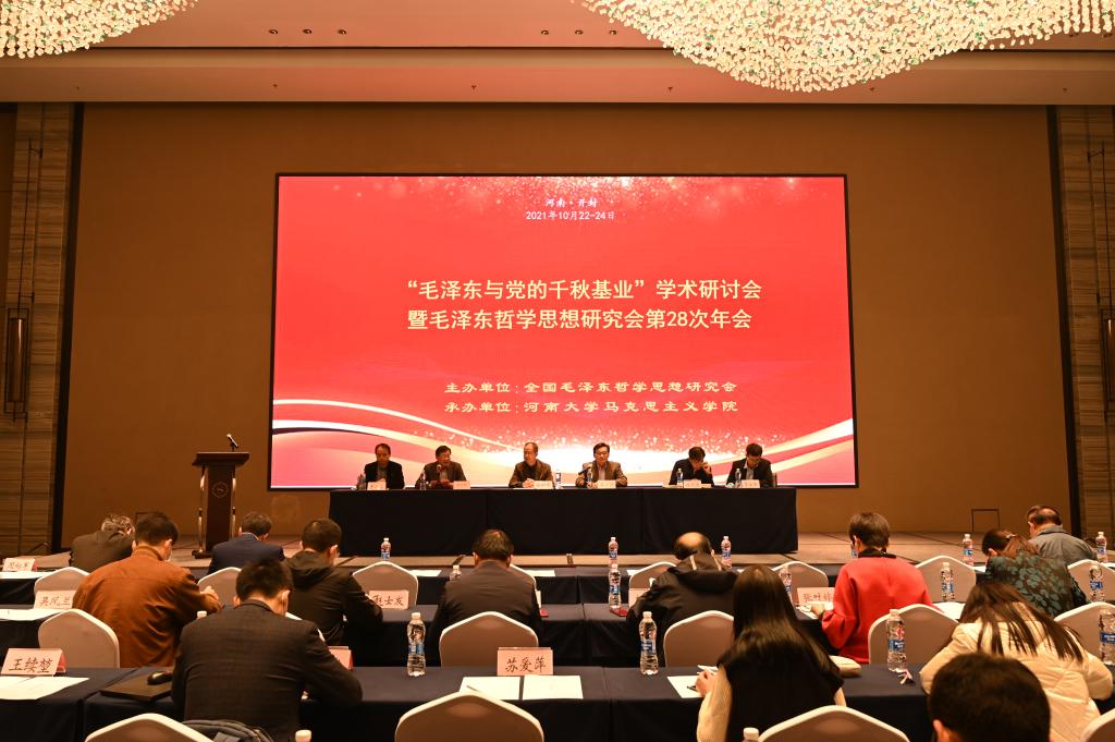 为庆祝建党100周年,贯彻落实习近平总书记“七一”重要讲话精神,10月22日至24日,由全国毛泽东哲学思想研究会主办,伟的国际1946bv官网承办的“‘毛泽东与党的千秋基业’学术研讨会暨毛泽东哲学思想研究会第28次年会”在河南开封成功召开。 来自中共中央党校、中共中央党史和文献研究院、中国社会科公司、上海市社会科公司、山东社会科公司、四川省社会科公司、贵州省委党校、上海市社会科学联合会、南京市社会科公司、北京大学、武汉大学、中山大学、山东大学、湘潭大学、伟德国际victor1946官网、延安大学、扬州大学、长沙理工大学、太原科技大学以及韶山毛泽东同志纪念馆、韶山毛泽东图书馆等研究、教学、文博、期刊机构的学者参加学术研讨。