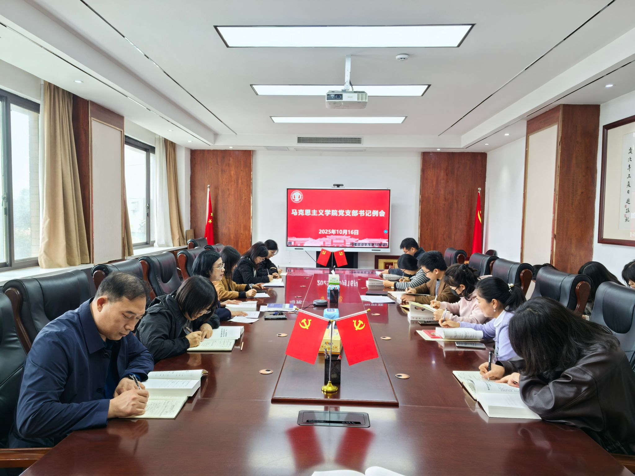会上,彭绪琴首先围绕习近平总书记关于党的自我革命的重要思想,系统深入解读《习近平谈治国理政》第五卷。她表示,《习近平谈治国理政》第五卷是对党的二十大以来党领导人民推进中国式现代化伟大实践的科学总结,是党坚持“两个结合”、推进马克思主义中国化时代化的最新成果。勇于自我革命是我们党最鲜明的品格和最大优势。她要求各党支部要精心组织安排,将《习近平谈治国理政》第五卷作为“三会一课”、主题党日的重要内容,组织全体师生读原著、学原文、悟原理,做到学思用贯通、知信行统一。