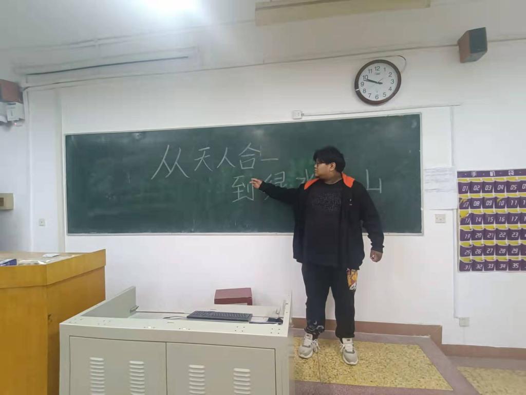 王冰琪以《致敬党员——杨维骏》为主题,讲述了老党员杨维骏两袖清风、为国请命的一生,呼吁学习弘扬心中始终装着人民的公仆情怀,传承革命精神,发扬优良传统。王海丞以《从“天人合一”到“绿水青山”》为题,深入分析了“绿水青山就是金山银山”思想蕴含的优秀传统文化,从哲学角度深入解析优秀传统文化创造性转化创新性发展的生成过程。