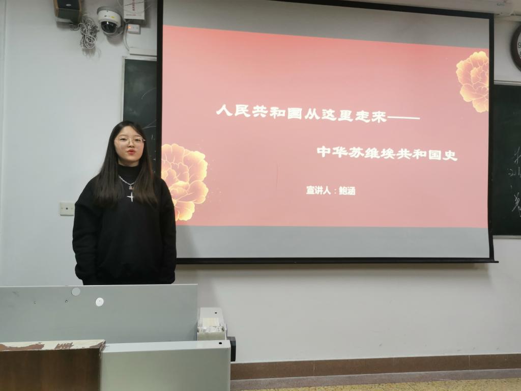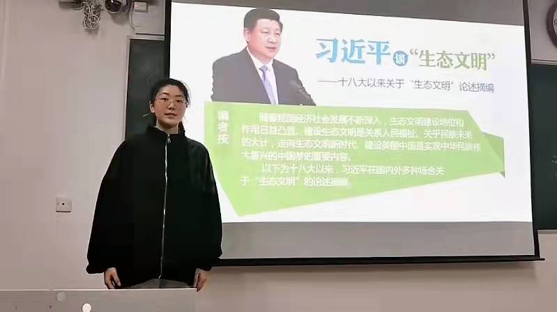于婷以《绿水青山就是金山银山--美丽中国走起来》为题,围绕良好生态环境是最普惠的民生福祉、保护生态环境就是保护生产力、以系统工程思路抓生态建设、实行最严格的生态环境保护制度四个方面对习近平的绿色发展理念进行宣讲;鲍涵以《人民共和国从这里走来——中华苏维埃共和国史》为题,讲述“中华苏维埃共和国为何定都瑞金”、“为什么说赣南等原中央苏区是我们党最重要的治国理政试验田”、“伟大苏区精神有哪些深刻内涵和历史表现”等重大时代之问,再现了艰苦卓绝的苏区岁月,她表示,让苏区精神历久弥新、永放光芒是我们继往开来、走好中国道路的时代使命;张景雯以《新时代新征程——坚持共产党人的初心和使命》结合张桂梅老师在华坪女子高级中学的教育扶贫阵地坚守共产党人初心使命的故事,向大家讲解中国共产党人初心和使命的内涵,她认为,在新时代,无论是抗击疫情还是抢险救灾,中国共产党员都在用自己的方式践行初心和使命,带领人民创造美好生活,为中华民族民族伟大复兴不懈奋斗。
