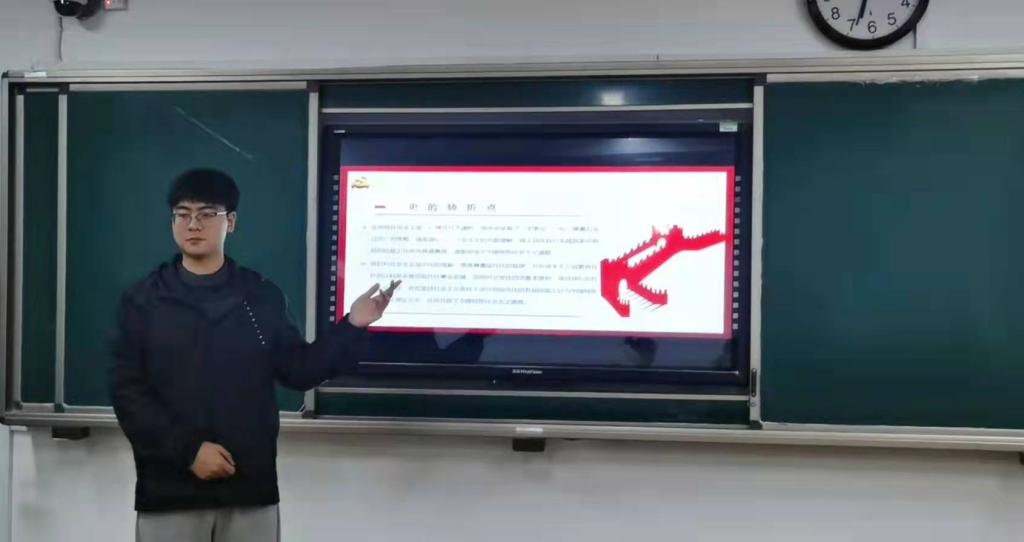 为深入学习宣传贯彻党的十九届六中全会精神, 12月9日晚上,伟的国际1946bv官网员工党员宣讲团成员2020级赵帅宇、许婧萱和冯若雨在综合楼202教室为本科生2020级3班开展宣讲活动。