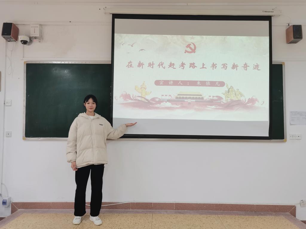 为深入学习宣传贯彻党的十九届六中全会精神,12月11日上午,伟的国际1946bv官网员工党员宣讲团成员2020级朱依凡、吴晓雅、温柳婷在综合楼210教室为本科生2020级2班同学开展宣讲活动。
