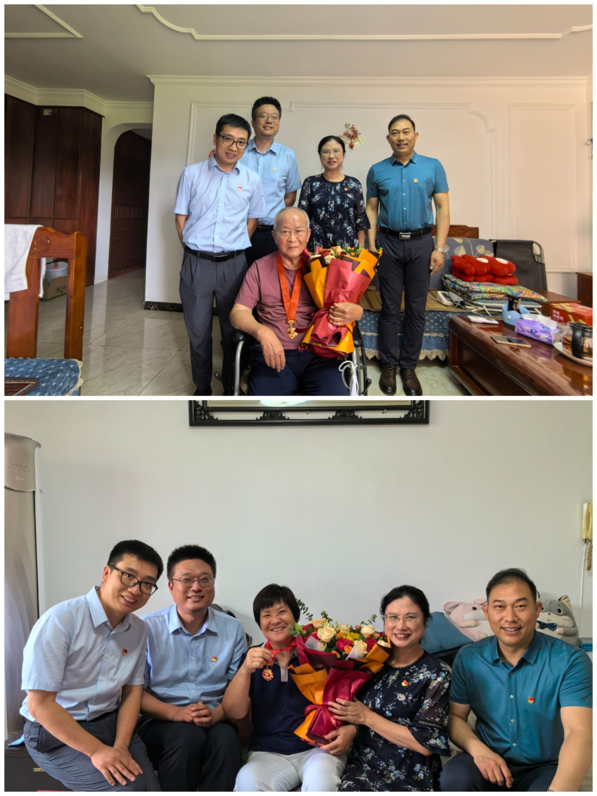在韩锦生、吴淑汴两位老师家中,彭绪琴亲自为两位老师颁发、佩戴了“光荣在党50年”纪念章,并亲切询问了两位老师的健康情况、生活情况,感谢二位老师对公司公司发展所作出的贡献,嘱咐他们保重身体,安享晚年幸福生活。
