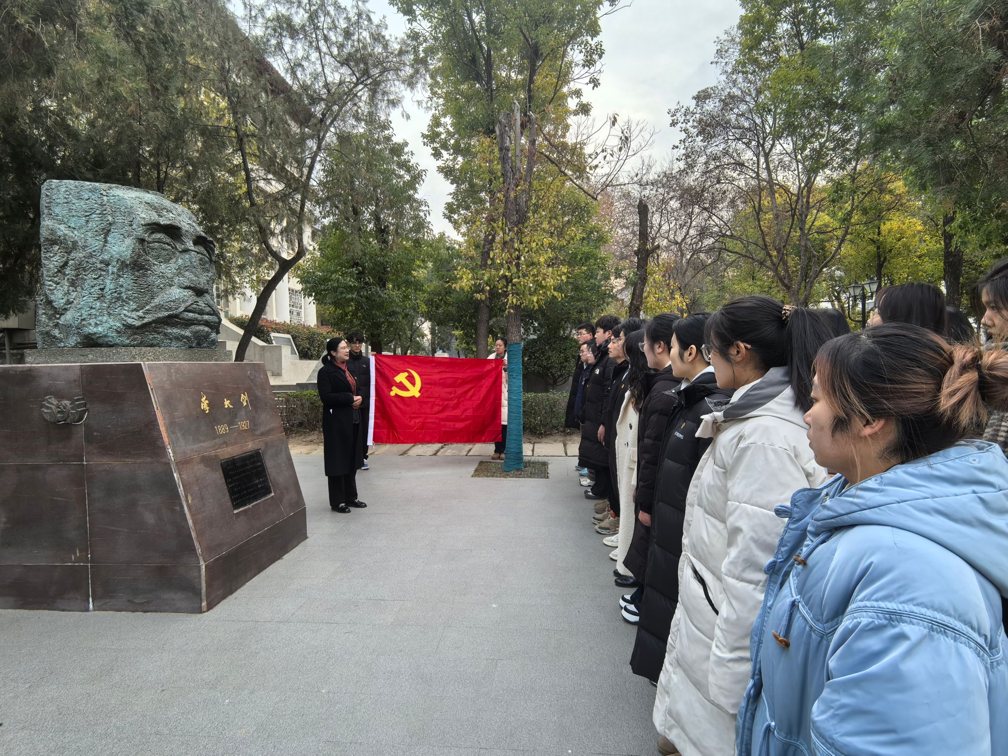 最后,彭绪琴在李大钊像前,为新党员上了一堂生动的党课。她表示,李大钊的一生是革命的一生,在他身上充分体现了一名真正的共产党人对共产主义事业的坚定信仰,对党和人民的无限忠诚。他一心为国为民,清正廉洁、不怕牺牲,并严守党的纪律、宁死不屈,永远是共产党人的光辉典范;希望新党员学习和弘扬李大钊的崇高革命精神,牢记入党誓词与党员身份,在组织上入党的同时更要在思想上入党,做有理想、敢担当、能吃苦、肯奋斗的新时代好青年。