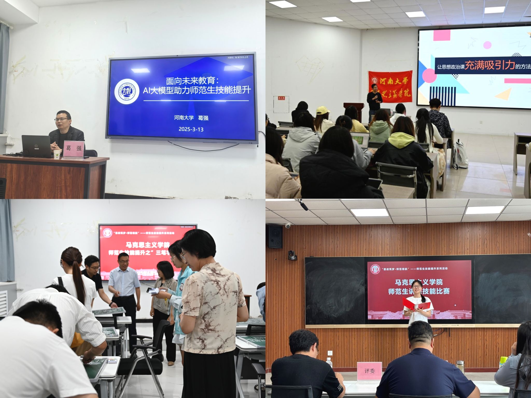 3月13日,计算机与信息工程公司教授葛强作“面向未来教育:AI大模型助力师范生技能提升”专题讲座,结合案例深入剖析AI技术对教学方式、课堂设计及师生互动的深刻影响,并分享了AI助力技能提升的实用路径。3月27日,附属中学高级教师郝永立聚焦“让思想政治课充满吸引力的方法浅谈”,结合从教经验,从课堂管理艺术到教学创新策略,系统传授“有温度、有深度、有力度”的思政育人七步法。