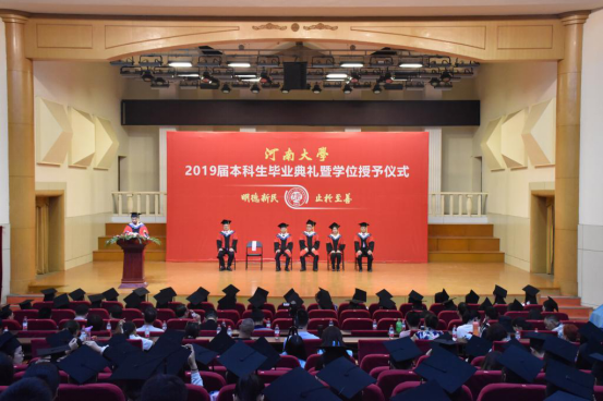 随后,毕业生代表李梦宇发言,她表达了对老师们辛勤培育表示由衷感谢,并希望大家都能不忘河大人的信念和初心——“以天下为己任、以真理为依归”,举鲜艳红旗,走人间正道。在校生代表郭硕发言,表达了自己对2019届学长学姐的深切祝福。她表示,我们要始终带着母校的爱与公司的期待在最有价值的青春中活出自己,要倚在前辈的肩膀上,用尽自己最大的能量,去开拓整个民族,甚至整个人类更广阔的天地。教师代表姜怀忠为毕业生送上真诚的祝福,他叮嘱同学们要业精于勤荒于嬉,拥有一颗感恩的心,记得常回家看看。他们的一言一语感情真挚,一字一句掷地有声,现场掌声此起彼伏。
