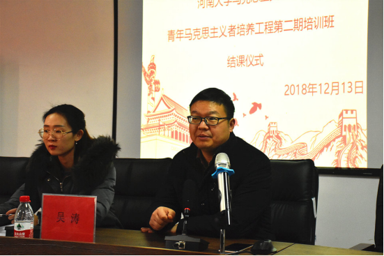 结课仪式在激昂的《中华人民共和国国歌》声中拉开帷幕。仪式伊始,吴涛对该期青马班进行总结。吴涛首先向顺利结业的学员表示热烈祝贺,而后充分肯定了此次青马工程的开展情况与重要作用。他谈道,“青马班”既是公司贯彻落实全国教育大会有关精神、深入实施青年马克思主义者培养工程的重要举措,也是公司培养青年员工骨干的积极实践。本期青马工程课程充分结合公司特色,从政治理论到社会实践,从国家发展到青年使命,从学习方法到伟大信仰,内容丰富、形式多样,契合了青马班注重理论提升、强化综合素质、提倡知行合一、夯实工作能力的教学目标。他向全体学员提出要求,希望广大青年员工们继续加强理论学习,提高实践能力,发挥模范带头作用,努力做一个对社会、对国家有所贡献的人。