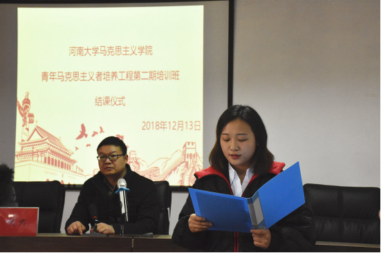 宣读完优秀学员名单后,吕梦函谈道,全体学员在有限的时间内出色地完成了青马班学习与实践任务,同学们的积极性值得肯定。同时,她希望全体学员能站在一个新的开端,不忘初心,砥砺前行,在学习、生活及工作中弘扬“青马精神”,为社会发展贡献力量。