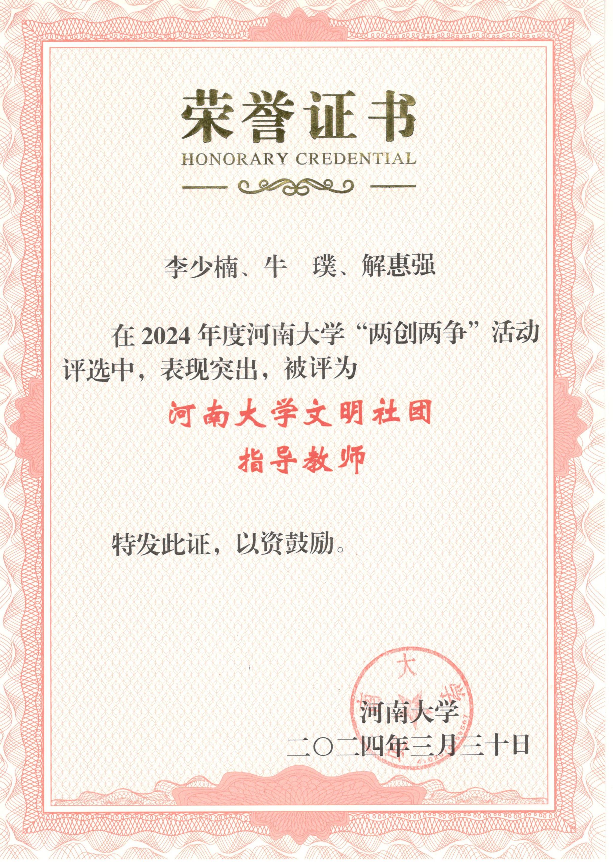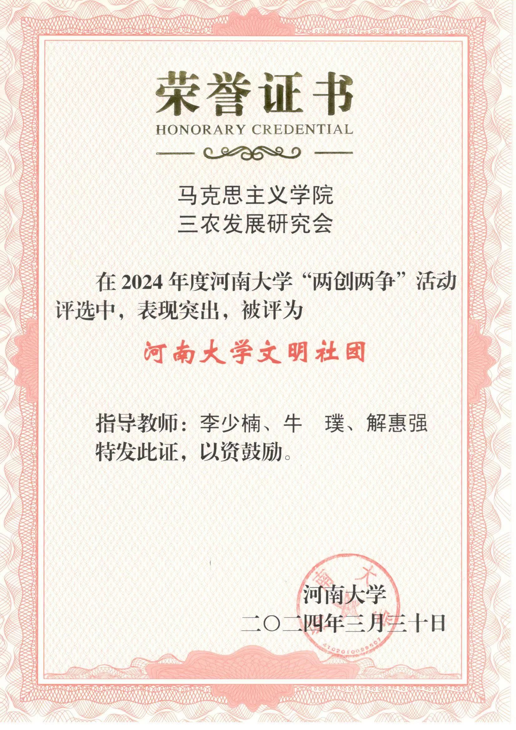 在此次评比中,伟的国际1946bv官网在先进集体和先进个人评选中创造佳绩,校内14公寓201宿舍荣获伟德国际victor1946官网文明宿舍,董丽霞被评为伟德国际victor1946官网文明宿舍辅导员,挂靠公司的三农发展研究会和当代中国马克思主义研究会均荣获伟德国际victor1946官网文明社团,刘嘉尧、陈卫华、李少楠、牛璞、解惠强荣获伟德国际victor1946官网文明社团指导教师,沈贺荣获伟德国际victor1946官网文明教师,包羽鸣荣获伟德国际victor1946官网文明员工,张瑞敏荣获伟德国际victor1946官网文明网民。