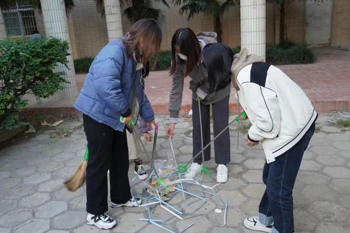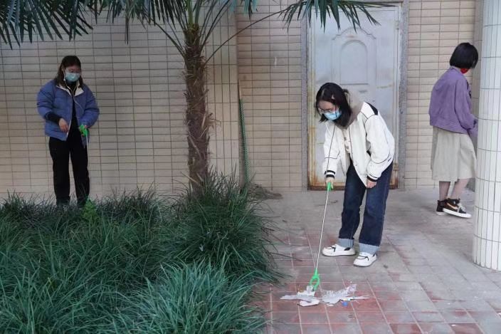 活动期间,志愿者们迅速集结,严格遵守疫情防控工作要求,深入开展环境卫生整治行动。他们按照要求分成四个小组,在各组组长的带领下领取垃圾桶、扫把、钳子等工具,进行车辆秩序维护、环境卫生清理以及花丛草坪整理等一系列工作,用实际行动换来了干净整洁的校园环境。