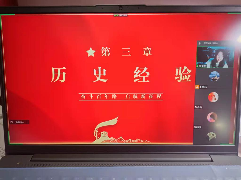 活动伊始,全体团员观看了中共中央新闻发布会视频,深入了解党的十九届六中全会取得的重要成果和重大历史意义。张敏讲述了党的十八大以来取得的各项成就,使同学们切实感悟到在建党百年之际召开十九届六中全会这一历史决策的正确性和前瞻性。在发言环节,同学们围绕“十八大以来自己的家乡和生活发生了哪些变化”积极发言。21级本科生李茉含分享到,自己的家乡现在道路变得更宽阔,空气质量越来越好,人民生活更加幸福。21级本科生杨振悦表示家乡的建档立卡政策给了很多员工教育上的支持。随后,张敏就“自己的理想和使命,怎样肩负起自己的使命”这一话题组织同学们讨论,同学们纷纷表示自己要在中国共产党的旗帜下,弘扬光荣传统,赓续红色血脉,练就过硬本领,为祖国发展贡献自己的力量。