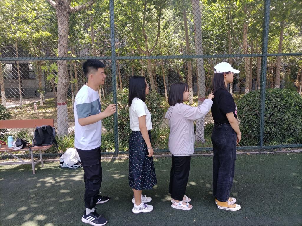 本次素质拓展活动由同手同脚、一起凹造型、“背字”接龙赛等六个游戏构成,以小组为单位开展进行。在同手同脚游戏中,队员们脚步整齐划一,互相配合,齐心协力迈向终点。一起凹造型游戏是脑力与体力的双重较量,对小组成员的迅速反应能力与耐力作出了极大的考验。蒙眼倒水环节中,由一位队员蒙上眼睛在黑暗中摸索,另一位队员在一旁指挥方向,两人配合共同将纸杯中的水运送至终点的游戏规则设定有效地培养了队员的团结合作意识,提高了队员间的默契程度。每支队伍在游戏进行前都认真地商讨游戏策略,在游戏中队员们相互配合,斗智斗勇,以热情饱满的态度、拼搏向上的精神、心有灵犀的协作在汗水中结下了友谊,为之后辩论赛中的良好配合奠定了深厚的感情基础。
