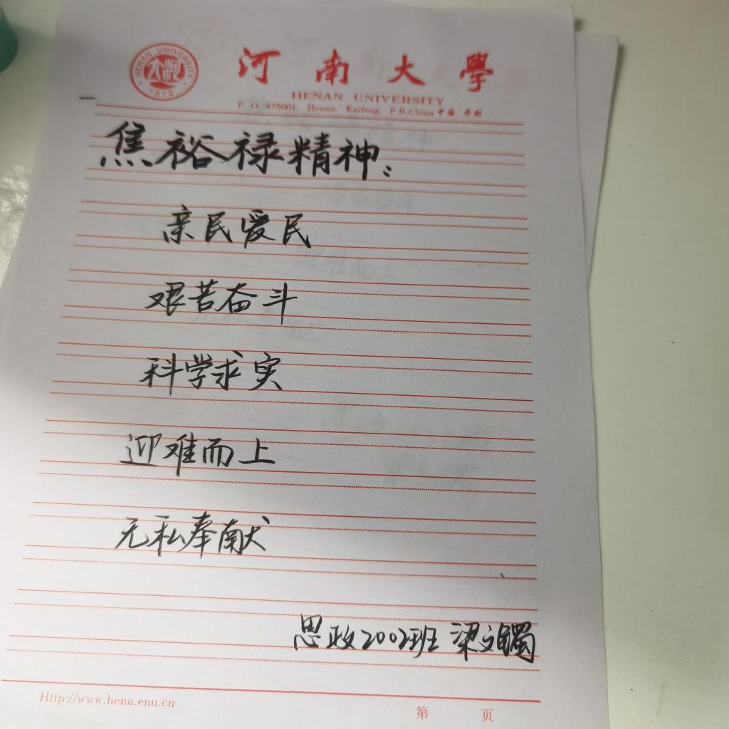 2002本科生团支部积极创新团日活动形式,采取线上线下结合模式。在线下活动中,支部成员共唱《中华人民共和国国歌》,集体观看影片《焦裕禄》,以此来加深同学们对开封本地党史和红色文化的了解与认同,观影后以团学习小组为单位开展红色朗诵、书法展示等活动。线上活动中,2002团支部连线河北工业大学伟的国际1946bv官网202支部,各团支书做了有关当地党史故事的分享,两校同学展开讨论,并纷纷表示“欲知大道,必先为史”,要更加深入地了解身边的百年党史,更加自觉地为身边党史精神的传承而努力奋斗。