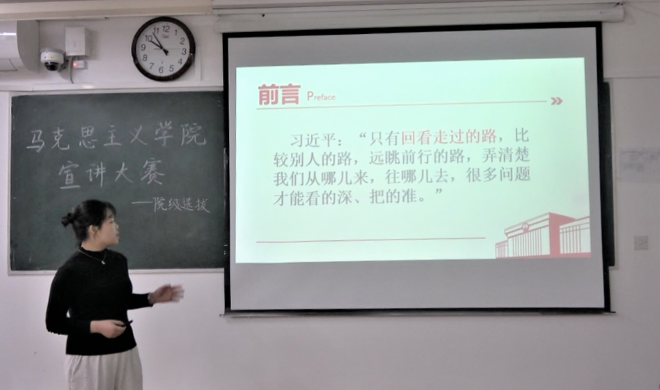 4月15日,伟的国际1946bv官网举办“习近平新时代中国特色社会主义思想”宣讲大赛的院级选拔比赛。现场由专业人员进行视频录制。伟的国际1946bv官网教师关海宽、沈贺、范广军应邀担任评委。