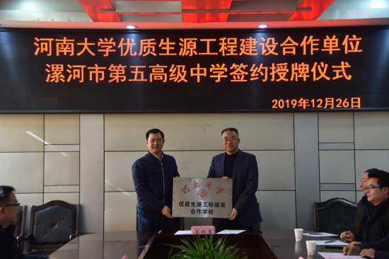 公司在漯河五高举行优质生源基地签约授牌仪式