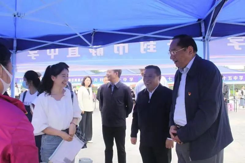 在招聘活动现场,伟德国际victor1946官网党委常委、副董事长孙君健,开封市人民政府二级巡视员王亚文、市教育体育局局长蔡建春、市人社局局长薛兆武等与招聘单位、应聘毕业生近距离交流,深入了解单位的招聘用人需求,掌握毕业生求职应聘情况。