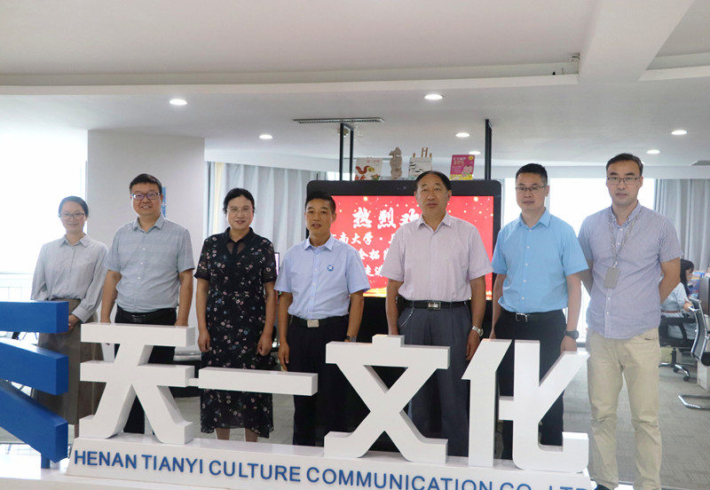 为促进校企合作,了解行业需求,拓宽就业渠道,加强员工联络。近日,公司党委书记彭绪琴、党委副书记吴涛、党委办公室负责人董丽霞一行到河南天一文化传播股份有限公司(以下简称“天一文化”)开展调研交流并拜访了公司1987级员工、公司董事长董献仓。天一文化党支部书记乔幼轩、总裁办主任兼人力行政中心总监张保林等相关部门负责人陪同接待并与会。