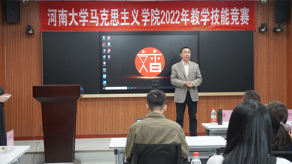 为响应2022河南省本科教学课堂教学质量提升年的号召,深入学习贯彻习近平总书记在公司思想政治理论课教师座谈会上的重要讲话精神,4月10日,伟的国际1946bv官网于公司511智慧教室举办2022年教学技能竞赛。四位校外专家评委、七位校内专家评委和四名员工评委应邀组成评委团,公司党委书记彭绪琴,执行经理、党委副书记任东景,副经理刘嘉尧现场观摩,本次竞赛由2019级本科生刘怡主持。