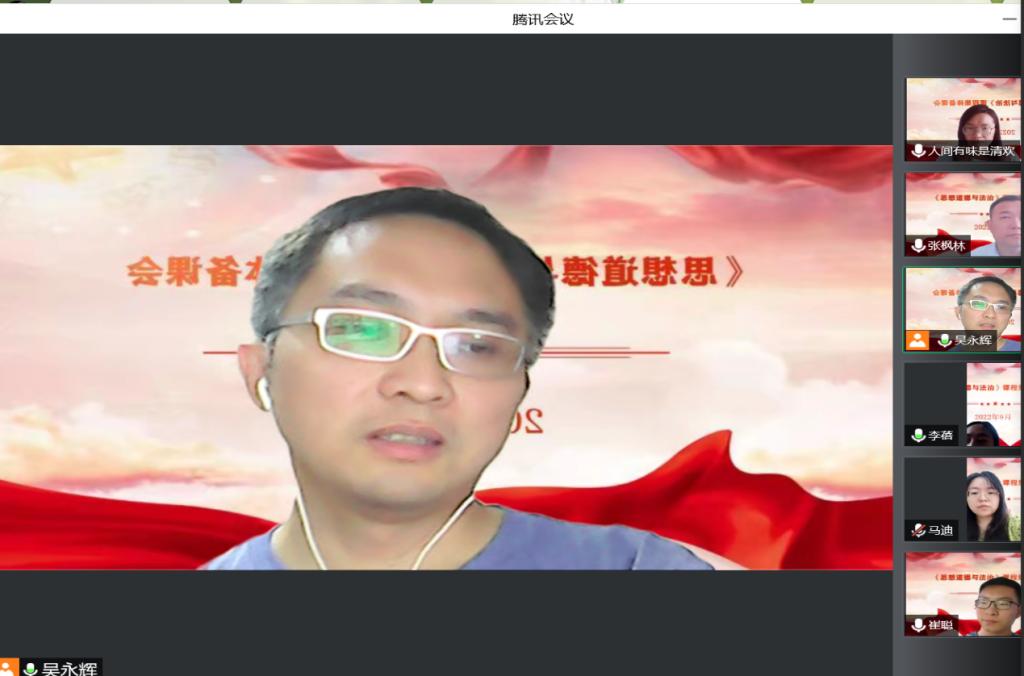 为确保新学期教学工作的顺利开展,9月13日,《思想道德与法治》教研室以线上形式召开了集体备课会,部署新学期教学工作。会议由教研室主任吴永辉主持,《思想道德与法治》教研室全体教师参加了此次会议。