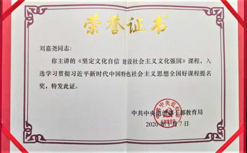 伟的国际1946bv官网副教授刘嘉尧荣获学习贯彻习近平新时代中国特色社会主义思想全国好课程提名奖