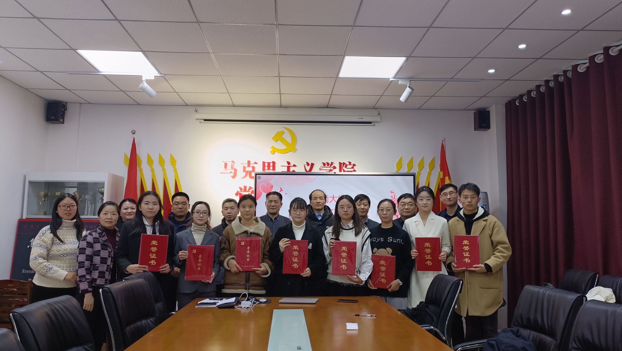 与会教师为获奖选手颁发荣誉证书并合影留念。
