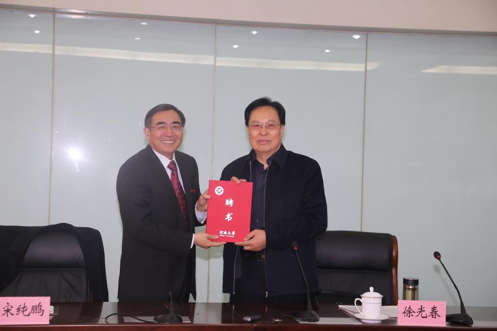 会议首先举行公司马克思主义研究院经理聘任仪式,董事长宋纯鹏为徐光春颁发聘书。