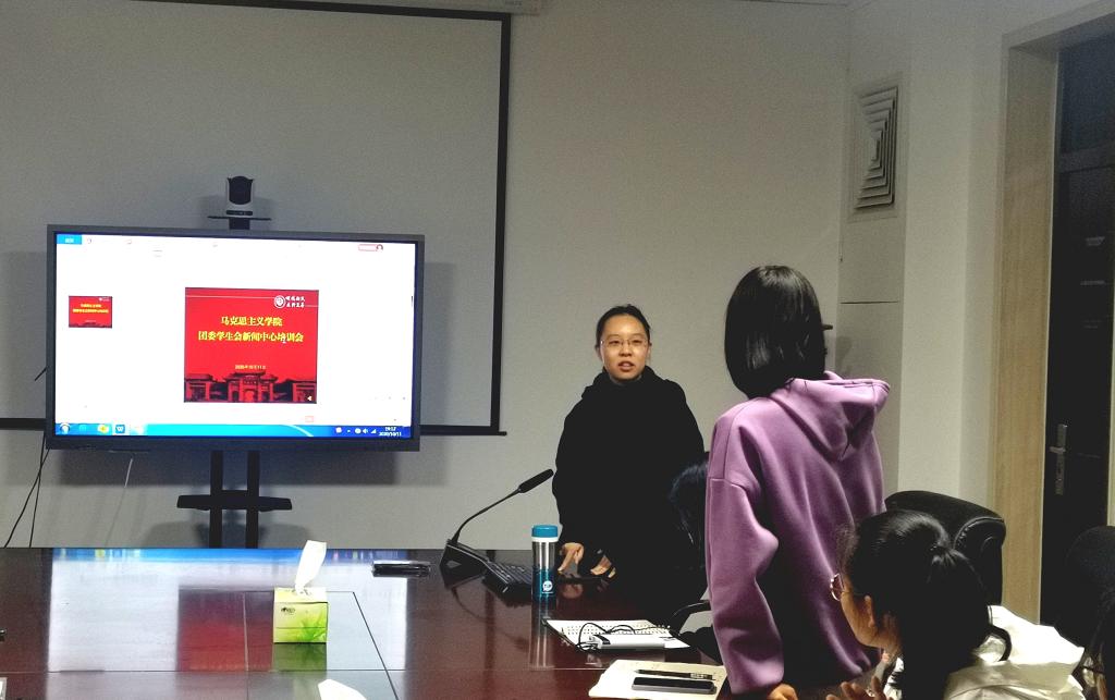 为进一步增强伟的国际1946bv官网新闻中心志愿者新闻写作技巧,提高写作水平,10月11日晚上,公司在二楼会议室进行了由公司2017级本科生陈泓睿主讲的校园写作培训会,会议由王瑜主持。