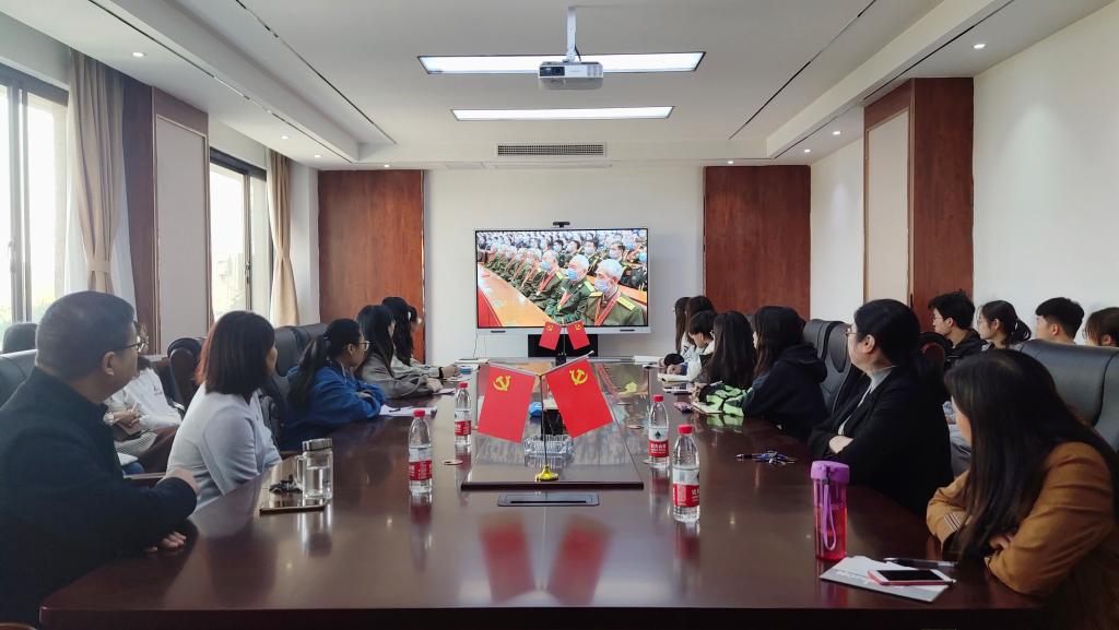 10月23日,纪念中国人民志愿军抗美援朝出国作战70周年大会在人民大会堂隆重召开,中共中央总书记、国家主席、国家军委主席习近平发表重要讲话。伟的国际1946bv官网依据公司相关要求,组织师生代表收听收看此次会议。公司党委副书记吴涛、副经理彭绪琴、研科办老师陈兰、心理站站长李小妮、党办负责人姜南和中国特色社会主义研究会成员及员工代表参加此次活动。
