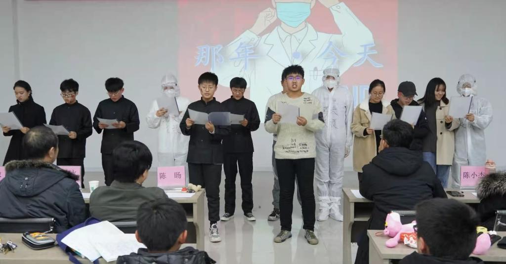 比赛在大家热烈的掌声和期待中展开。爱国主义短剧《黄海魂》,讲述了两个巡逻战士与穿越时空而来的民族英雄邓世昌的对话。这场穿越时空的对话告诉我们:强国才能强军,强军必先强人,强人必先强魂。维护祖国统一和领土完整的爱国主义是我们的铸魂工程,我们要将爱国深深的刻在骨子里,不忘国耻,奋勇前进。《孤岛32年》讲述了王继才、王仕花夫妇在孤岛戍边32载的感人故事,夫妇二人守护的岛名叫开山岛,是一个对我国而言十分重要的国防战略岛,岛上无人无电无淡水,条件十分艰苦,此前的多位民兵也都因此而不愿长期值守。王继才夫妇却在孤岛上默默坚守,为国守岛32年,把青春年华全部先给了祖国事业。王继才夫妇的事迹也告诉我们,即便是最平凡的岗位,也能书写不平凡的人生华章,我们要在细小中、在基层中“解剖麻雀”,把人做“大”、把事做“精”、把欲做“淡”,锻造优良的品行、品格、品位。2020年是不平凡的一年,新型冠状病毒肺炎疫情的爆发给我国的各项事业发展和人民的生命财产安全带来巨大的威胁和损害,在这场疫情大考当中,涌现出一批批新时代的英雄。《众志成城 风雨同担》、《平凡英雄》、《抗疫援助 舍小家为大家》等短剧,为我们呈现出在2020年抗疫战争中的感人故事。在国家危难面前,那些冲锋陷阵在一线的白衣天使,始终把人民的利益放在第一位的共产党员,不畏牺牲、勇于担当的青年一代,默默奉献、坚守岗位的普通人……用自己的拼搏,构筑起不屈的中国脊梁。向我们诠释了作为一个中国人的担当和使命,也启示我们要自觉以时代英雄为榜样,坚定信念、不忘初心、奋力拼搏。