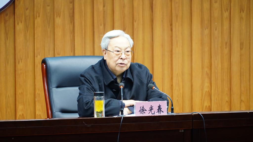 徐光春传达了中宣部常务副部长王晓晖同志在会上的讲话精神。一要聚焦主要任务,推进学习宣传习近平新时代中国特色社会主义思想走心、走深、走实;二要聚焦党和国家的工作大局,营造建党百年的浓厚氛围;三要聚焦巩固马克思主义的指导地位,打好意识形态领域的主动战;四要聚焦马工程高质量发展,在守正创新中获得新发展。
