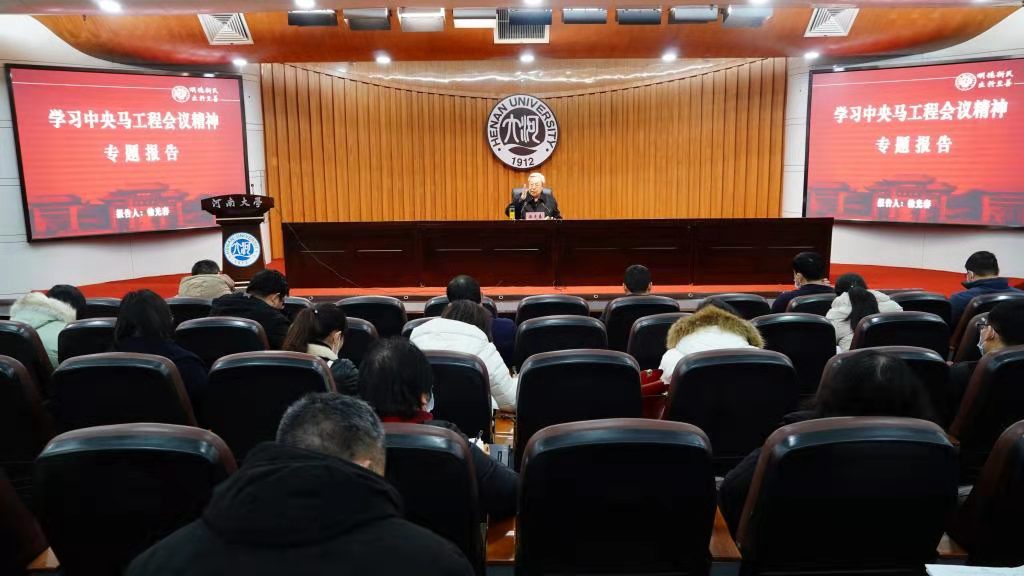 12月24日上午,中央马克思主义理论研究和建设工程咨询委员会主任、河南省委原书记、伟德国际victor1946官网马克思主义研究院经理徐光春在伟德国际victor1946官网金明校区行政楼249会议室作了题为“学习中央马工程会议精神”的专题报告。公司党委副书记张宝明出席报告会并致辞。伟的国际1946bv官网全体领导班子成员及公司师生代表聆听了报告会,会议由伟的国际1946bv官网执行经理张向东主持。