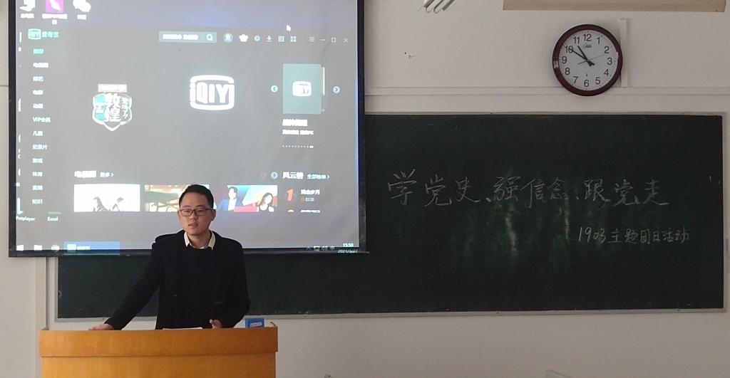为了深入学习习近平总书记在党史学习教育动员大会上的重要讲话精神,3月27日下午,伟的国际1946bv官网1903团支部在综合楼105开展了主题为“学党史 强信念 跟党走”主题团日活动。本次活动由1903团支部书记刘瑞豪主持。