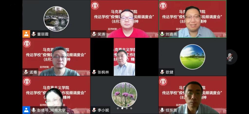 各领导班子成员从师生疫情信息排查、网格化管理、线上教学和考试、新生报到等方面进行了汇报。