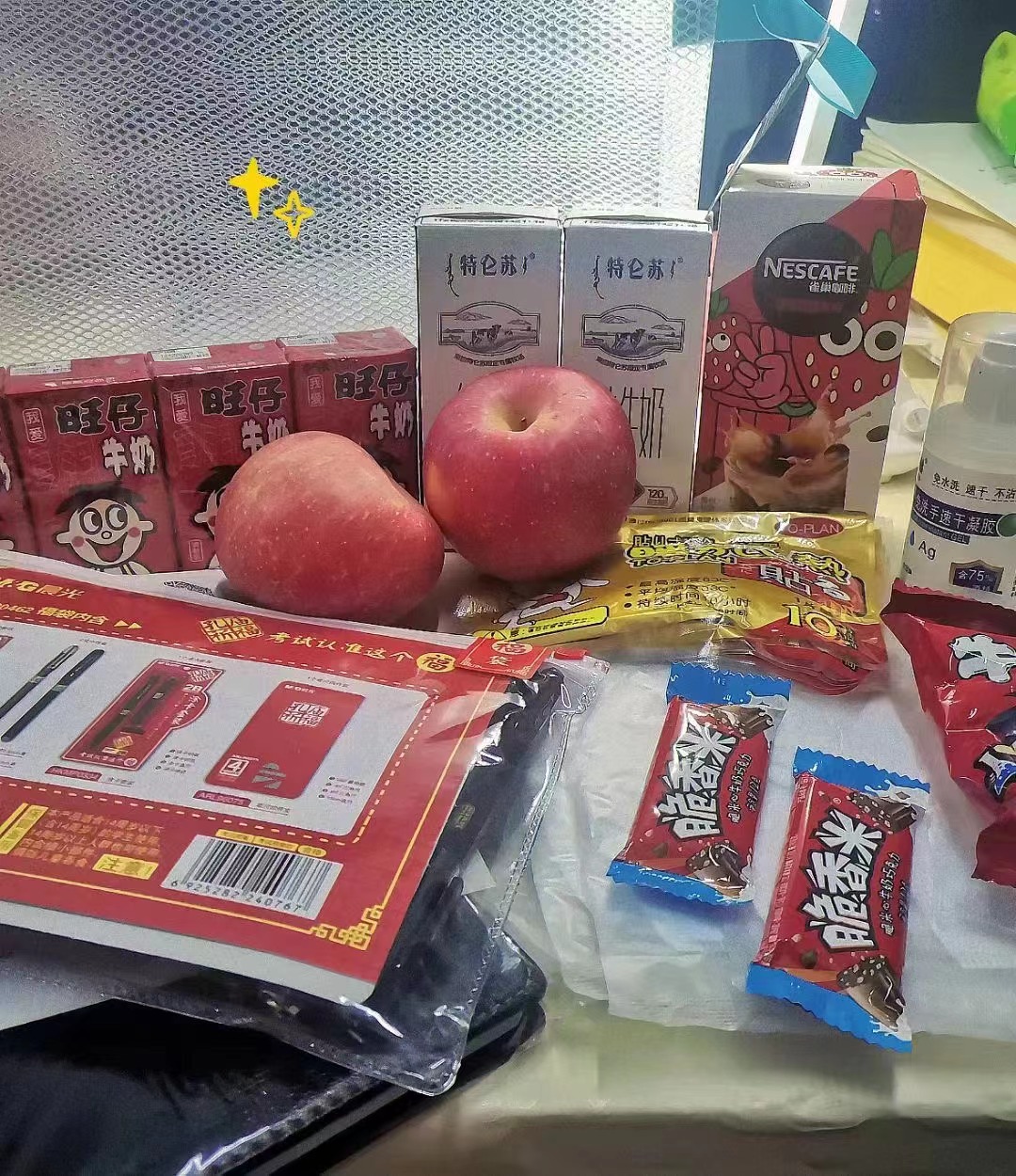 活动中,领导们至员工宿舍,亲自将承载着祝福的“考研加油包”交到员工手中,并赠予暖心的寄语,希望同学们顶住压力,认真备考,用最好的状态迎接考试。考研加油包装满了沉甸甸的心意:孔庙祈福套装包,祝考生福气满满;4瓶旺仔牛奶、1包旺仔奶糖,祝考生运气旺旺。除此之外,加油包还装有N95口罩、咖啡、苹果、暖宝宝贴、笔记本、酒精凝胶等。物资丰富,情真意切。每样礼物都饱含着公司全体领导和老师对学子的加油鼓励和美好祝福。学子们在收到“考研加油包”后备受鼓舞,纷纷表示在最后冲刺阶段一定会坚定考研信念,保持学习动力、刻苦努力、争创佳绩,为公司争光,为公司添彩。