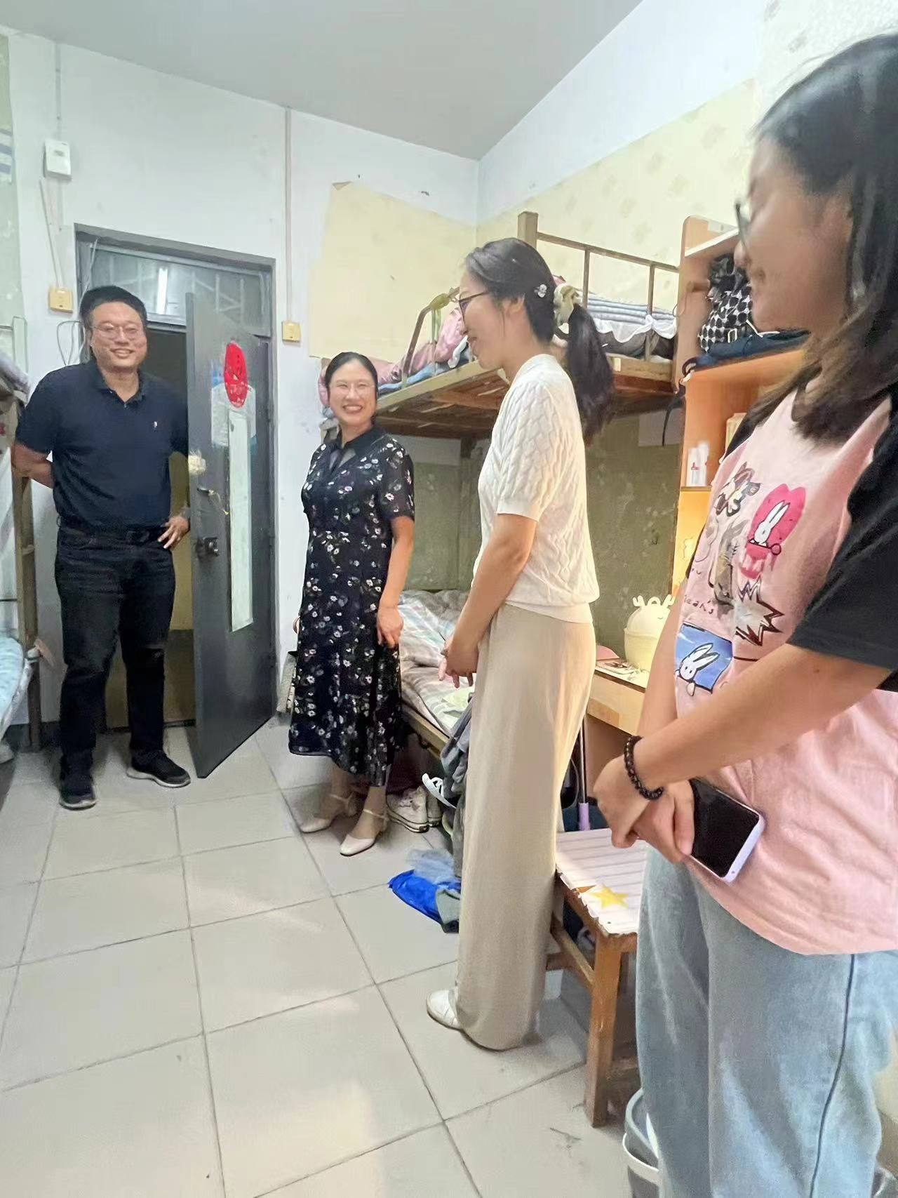 为使2023级研究生新生感受到公司的关怀,增进师生情谊,9月8日下午五点半,公司党委书记彭绪琴、执行经理任东景、副书记郑珊珊、副经理孟骞、刘嘉尧、关海宽等领导班子成员深入2023级研究生宿舍走访看望。走访中,公司领导对研究生新生的到来表示热烈欢迎,并与员工亲切交谈,仔细询问他们的个人基本情况,深入了解员工对到校后的住宿、就餐的适应情况以及对今后读研生活的规划。
