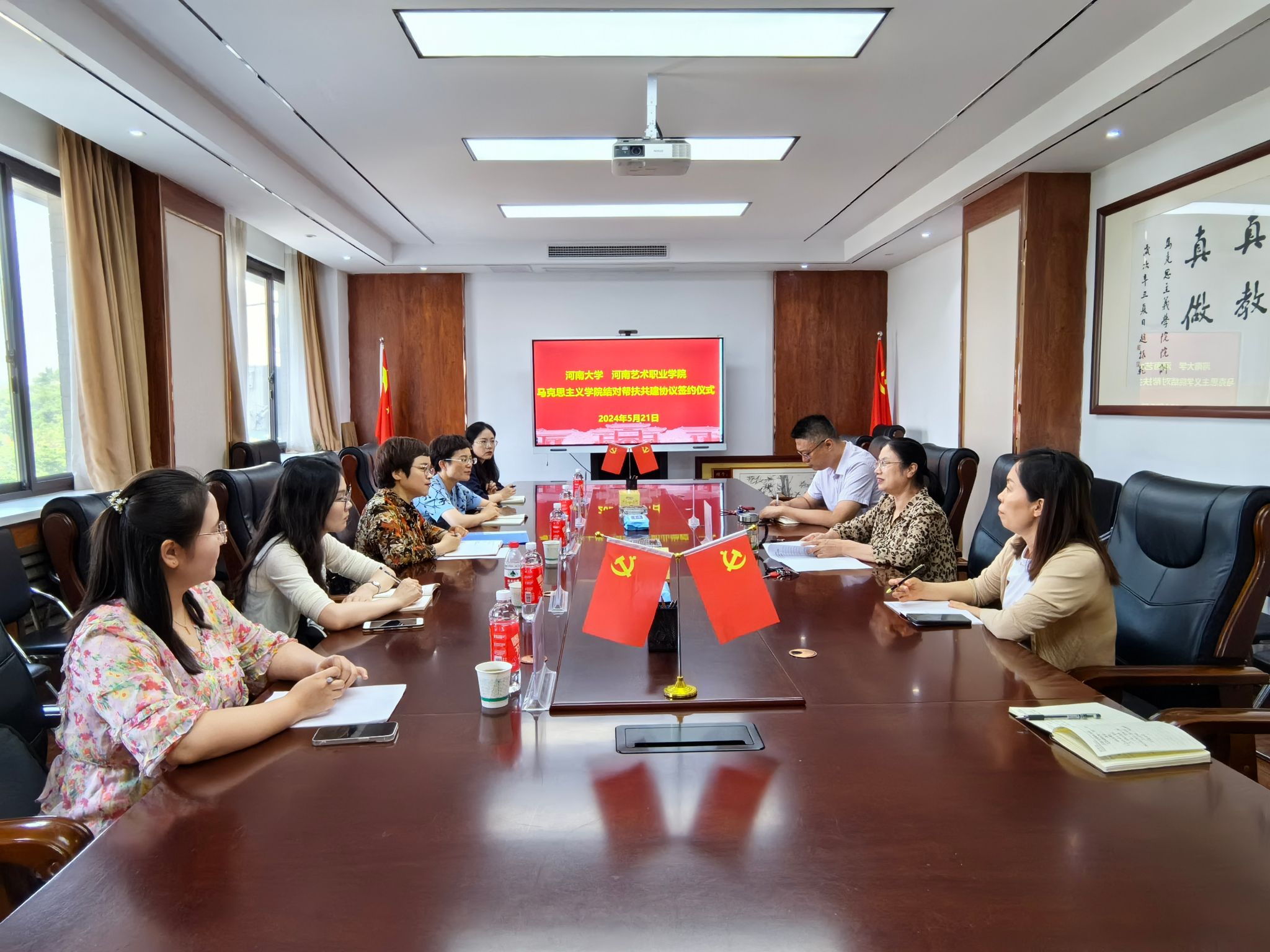 为贯彻落实河南省委宣传部、中共河南省委高等公司工作委员会、河南省教育厅《关于开展伟的国际1946bv官网结对帮扶工作的通知》精神,充分发挥作为省重点伟的国际1946bv官网的示范引领带动作用,5月21日,伟的国际1946bv官网与河南艺术职业公司伟的国际1946bv官网结对帮扶共建签约仪式暨座谈交流会在明伦校区科技馆三楼会议室举行。伟德国际victor1946官网公司党委书记彭绪琴、副经理孟骞,河南艺术职业公司伟的国际1946bv官网经理王利蕊、副经理张静,以及双方公司部分青年教师参加签约仪式。