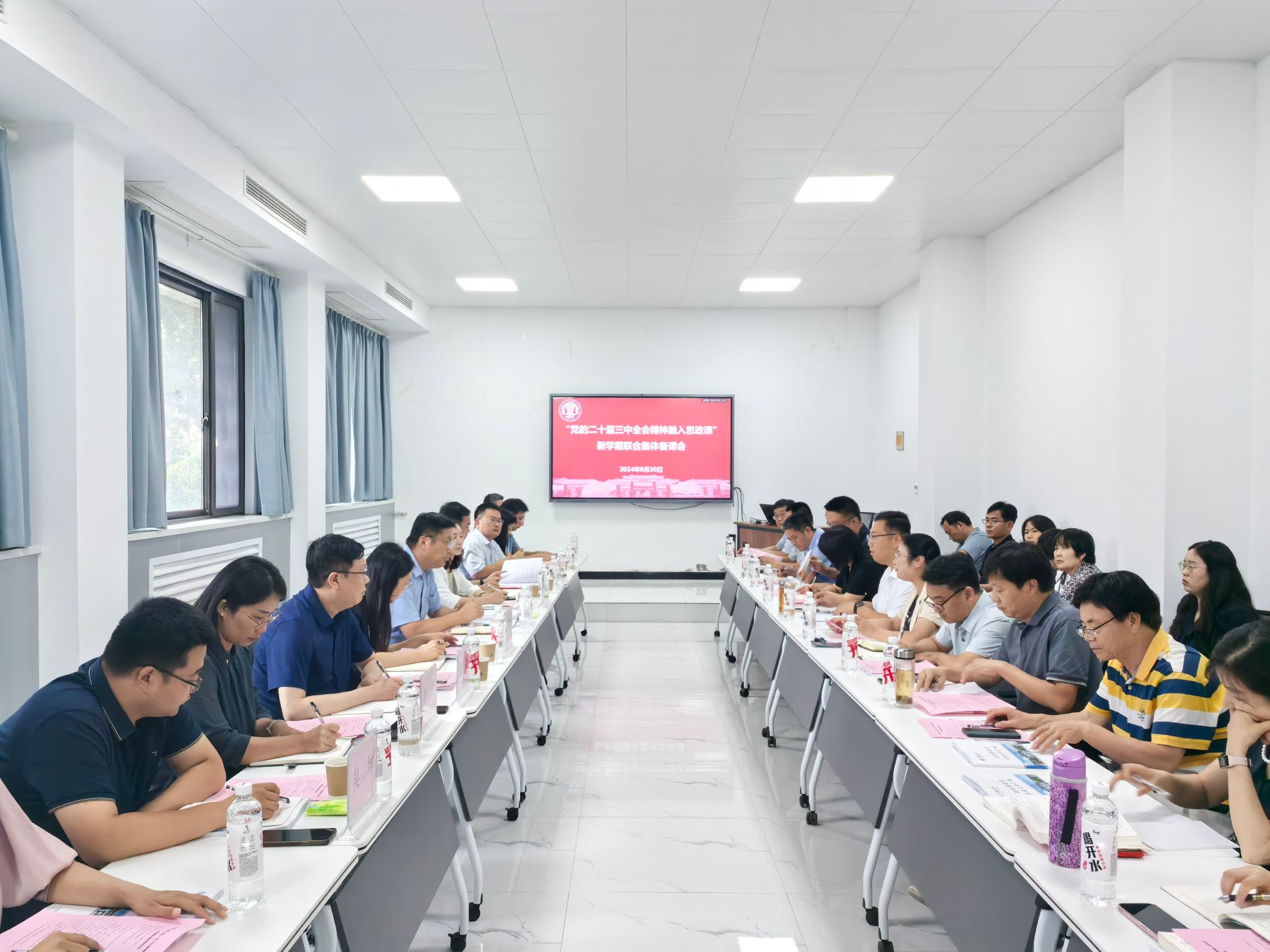 为深入学习宣传贯彻党的二十届三中全会精神,大力推动全会精神融入思政课,8月30日,伟的国际1946bv官网举行“党的二十届三中全会精神融入思政课”新学期联合集体备课会。公司党委副书记杨萌芽参加备课会并讲话。公司党委办公室、党委组织部、党委宣传部、党委统战部、教务处、员工处、校团委、党委研究生工作部、伟的国际1946bv官网相关负责人以及伟的国际1946bv官网《习近平新时代中国特色社会主义思想概论》教研室、《思想道德与法治》教研室全体专兼职思政课教师参会。备课会由公司党委书记彭绪琴主持。