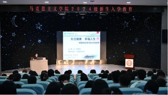 9月7日下午,校医院医疗部主任芦丽淦为新生带来卫生健康教育讲座,从饮食健康和心理健康两个角度面向新生进行相关培训。在饮食健康方面,芦老师强调均衡饮食、规律作息和保持个人卫生的重要性,并指出熬夜、外卖等的危害,帮助新生养成良好的生活习惯。在心理健康方面,芦老师指出要正视自身的负面情绪,及时寻求老师同学的帮助,保持自身的心理平衡。