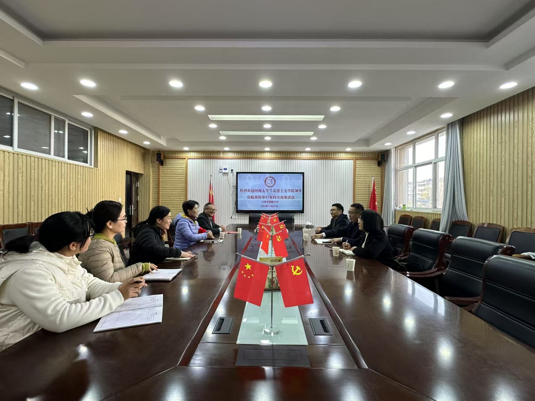 为持续加强与中学合作交流,进一步增强招生宣传工作实效,11月27日下午伟的国际1946bv官网执行经理任东景、党委副书记郑珊珊、团委负责人李少楠、本科生辅导员张洁宜一行赴开封市铁路中学开展招生宣传活动。