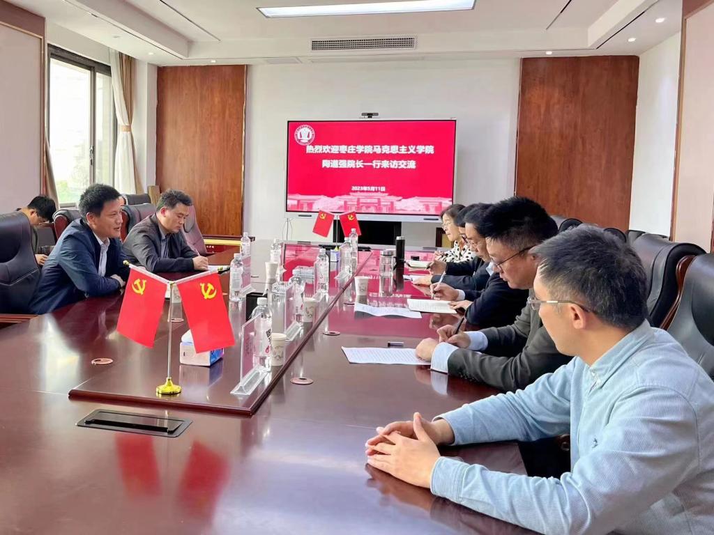 5月11日,枣庄公司伟的国际1946bv官网经理陶道强、思想道德与法治教研室主任褚衍成一行2人来公司就青年教师培养与人才队伍建设、思政课教学改革与团队建设、团队建设与马院创新发展等方面进行座谈交流。伟的国际1946bv官网执行经理任东景、副经理孟骞、副经理关海宽、思想道德与法治教研室主任吴永辉、中国近现代史纲要教研室主任郑晓文等参加座谈。座谈会由任东景主持。